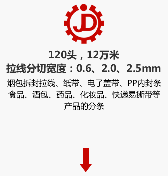 LFT120头拉线分条机,主要用来生产1万米烟包、食品、酒包、药品、化妆品、磁带、快递袋等产品的包装盒或盒袋的拆封拉线。